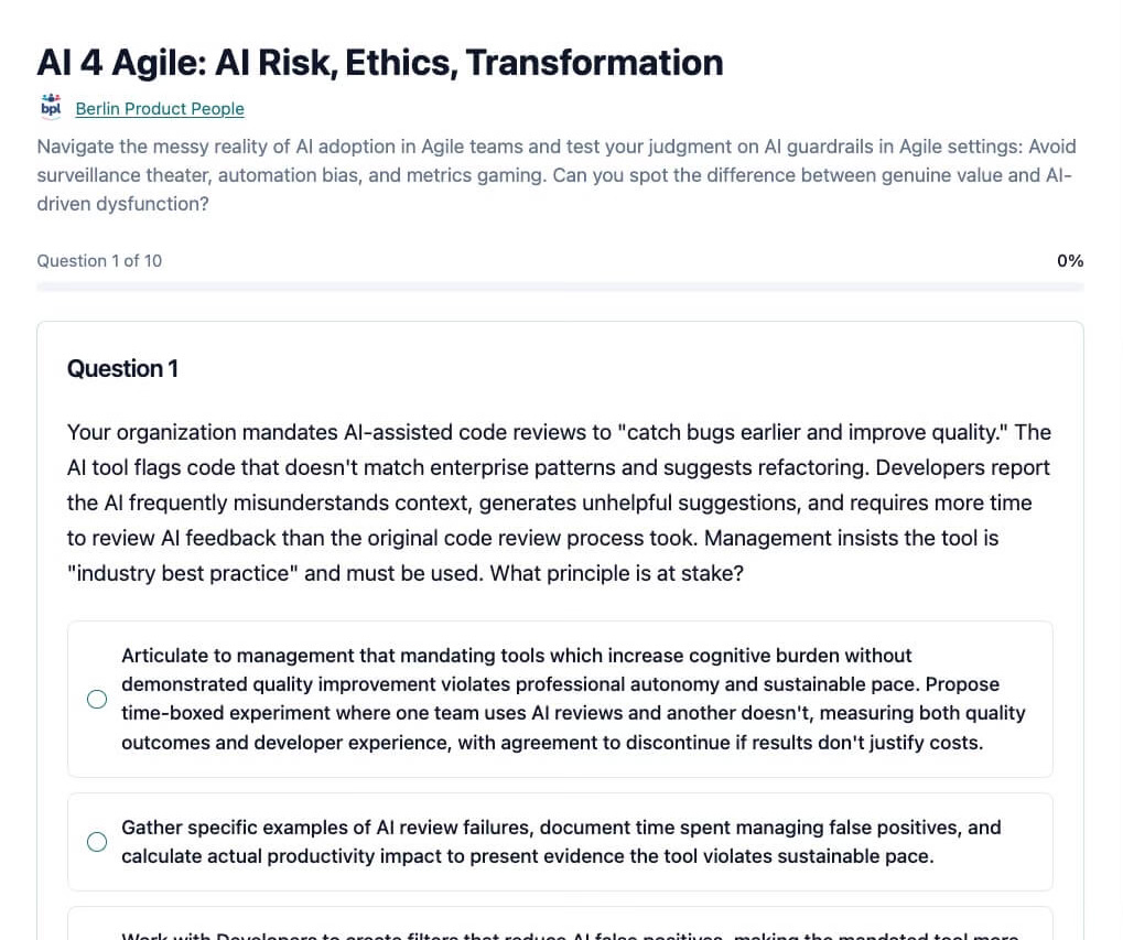 Test-Drive the Questions of the AI 4 Agile Assessment